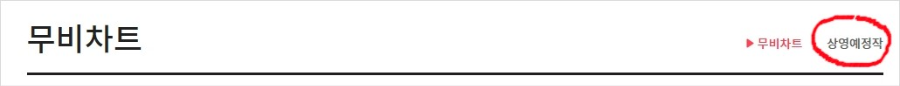 CGV 홈페이지 상단의 '영화' 메뉴에 보면 '무비차트' 항목이 있습니다. '무비차트'를 클릭하면 상영작 포스터들이 예매율 순으로 나열되는데 우측 상단의 [ 상영예정작 ]을 클릭하면 개봉일 순으로 나열되어 보기가 더 편리합니다.