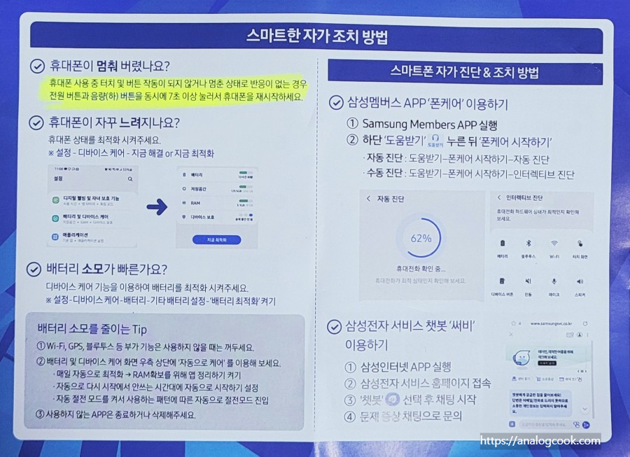 스마트한 자가조치 방법 안내장을 한 장 건내주시면서